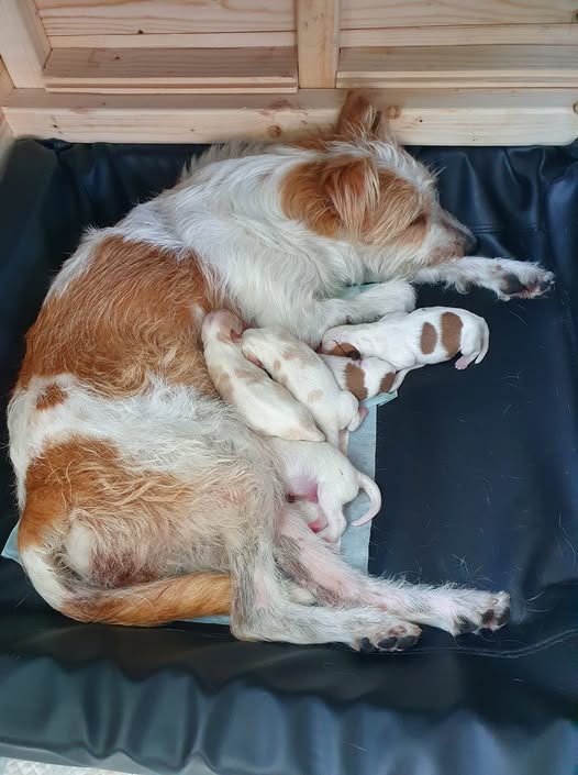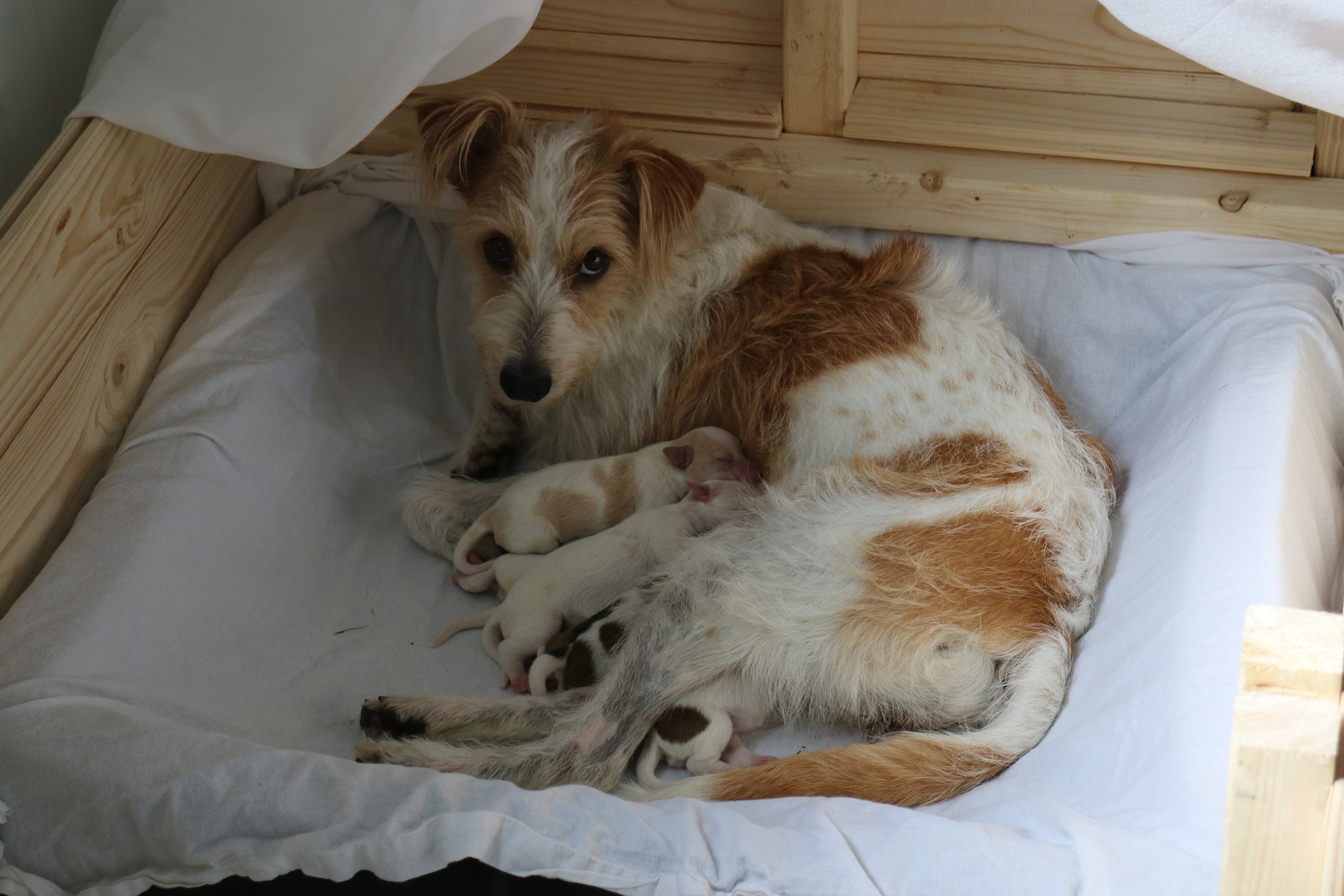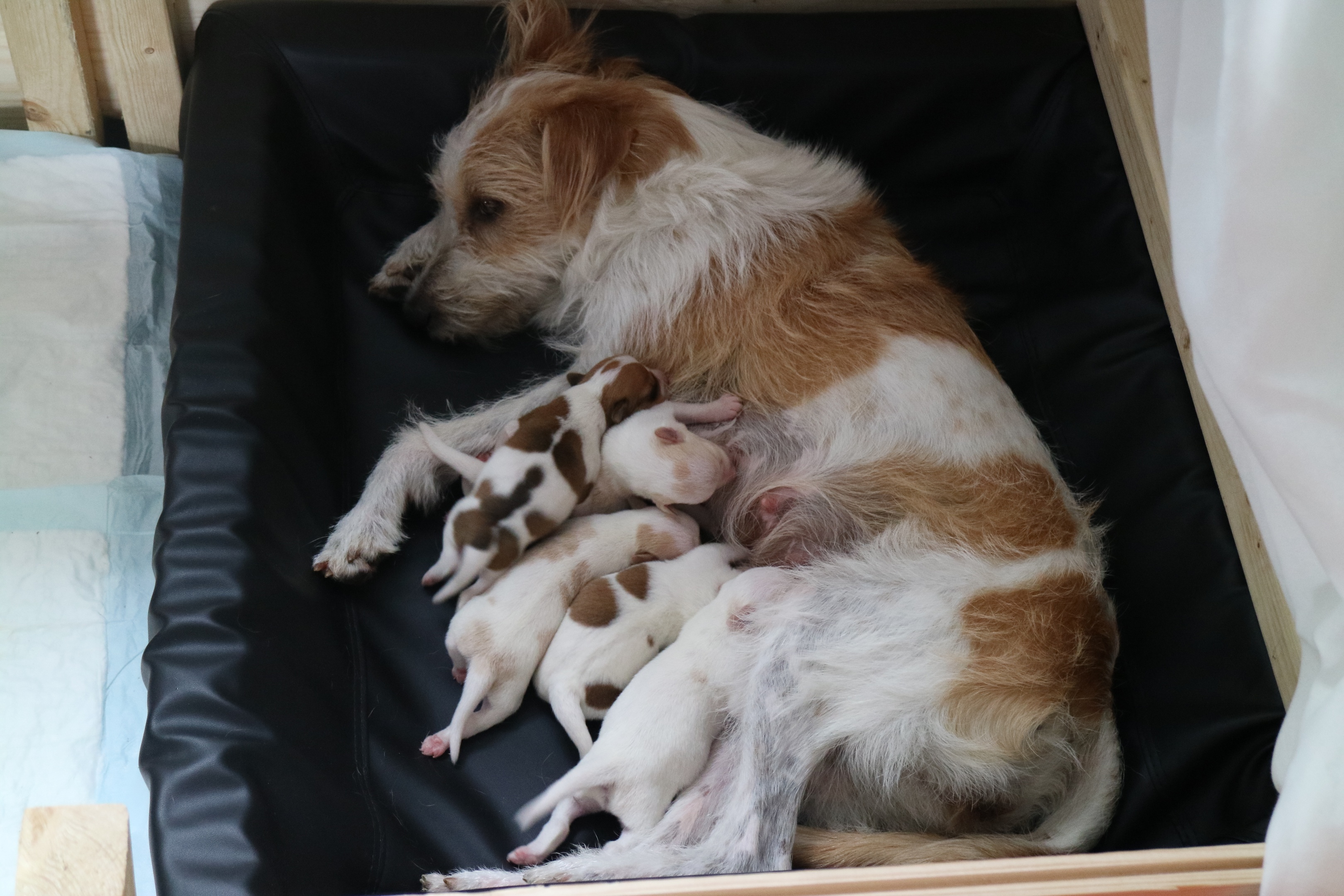 En liten uppfödning av Kromfohrländer och Labrador retriver